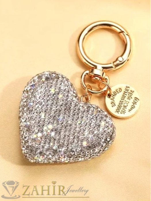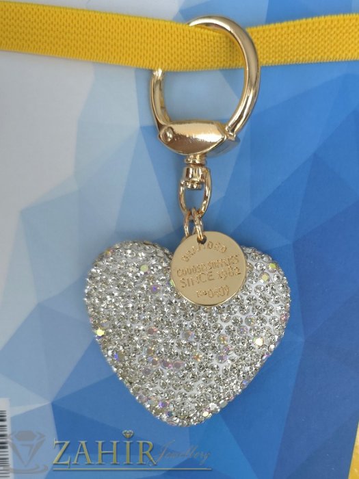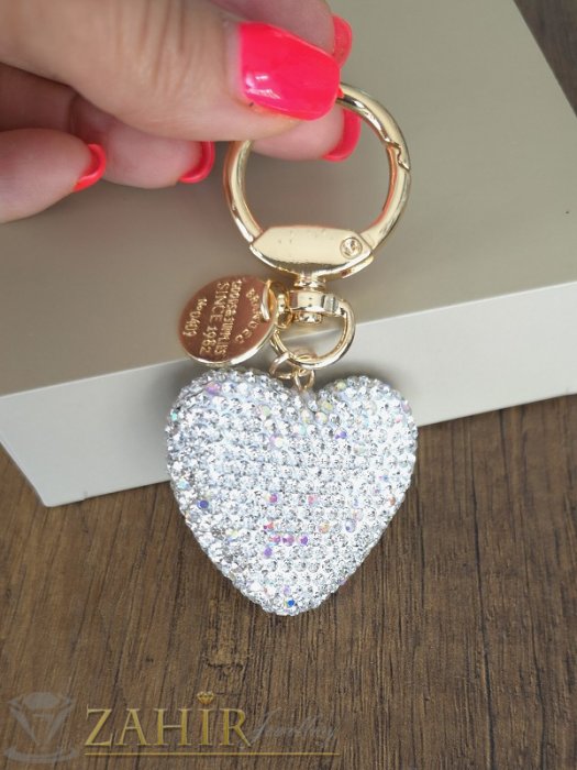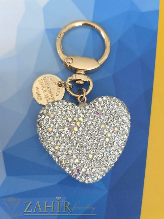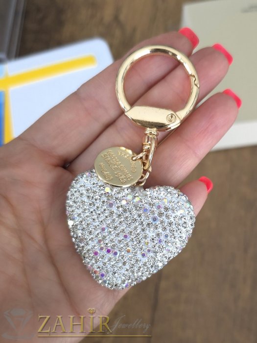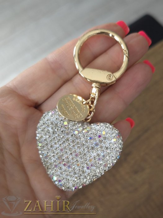 Луксозен ключодържател със златен или сребърен цвят и приятно проблясващи камъчета.