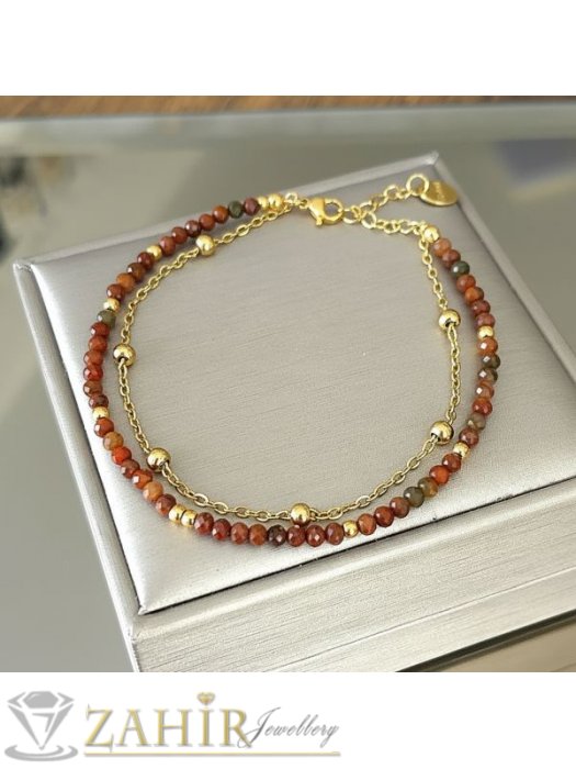 Гривната е изцяло ръчна изработка от естестени камъни и метални елементи . Всяка гривна е уникална и може да бъде намерена и закупена само онлайн от магазин Захир на намалена промо цена.