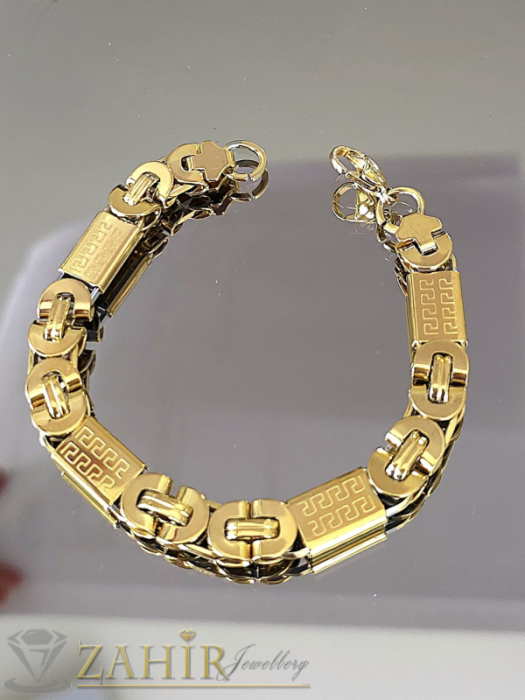Вечна непроменяща цвета си стоманена гривна с черепи и рицарски кръст, широка 1,5 см
